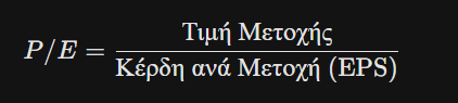 Ο δείκτης Τιμής προς Κέρδη (Price-to-Earnings) δείχνει πόσα ευρώ είναι διατεθειμένοι να πληρώσουν οι επενδυτές για κάθε 1€ κερδών της εταιρείας.